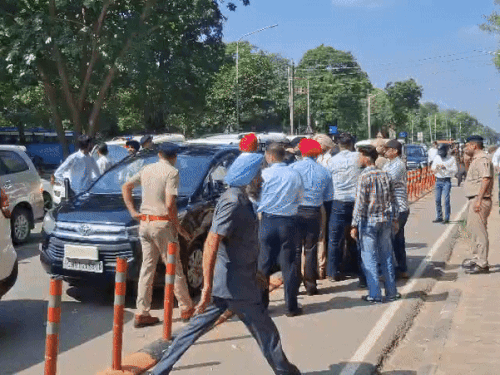 चंडीगढ़-पंजाब पुलिस विवाद, राज्यसभा चुनाव मामला, फर्जीवाड़ा आरोपी, हथियार ताने जाने की घटना, पुलिस टकराव, सुरक्षा बल तनाव, चुनावी विवाद, वरिष्ठ अधिकारियों जांच