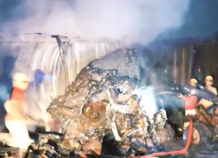 जयपुर : जयपुर-अजमेर नेशनल हाईवे पर मंगलवार रात 10 बजे दूदू के मोखमपुरा के पास एक भीषण हादसा हो गया। LPG गैस सिलेंडर से भरे एक ट्रक को बेंजीन केमिकल से भरे टैंकर ने जोरदार टक्कर मार दी, जिससे टैंकर के केबिन में आग लग गई। देखते ही देखते आग ने ट्रक को अपनी चपेट में ले लिया और करीब 200 सिलेंडर एक के बाद एक फट गए। धमाकों की आवाज 10 किलोमीटर दूर तक सुनाई दी, और कई सिलेंडर 500 मीटर दूर खेतों में जा गिरे। इस अग्निकांड में टैंकर ड्राइवर रामराज मीणा (35) जिंदा जल गया, जबकि ट्रक कंडक्टर सद्दाम मोहम्मद घायल हो गया, जिसे भांकरोटा के जीवन रेखा हॉस्पिटल में भर्ती कराया गया है।