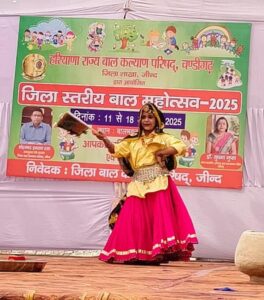 जींद : उपायुक्त एवं प्रधान, जिला बाल कल्याण परिषद् मो. इमरान रजा के मार्गदर्शन तथा अतिरिक्त उपायुक्त विवेक आर्य के दिशा-निर्देशानुसार बुधवार को बाल भवन जींद में जिला स्तरीय एकल नृत्य प्रतियोगिताओं का भव्य आयोजन किया गया। कार्यक्रम की अध्यक्षता जिला बाल कल्याण अधिकारी मलकीयत चहल ने की।