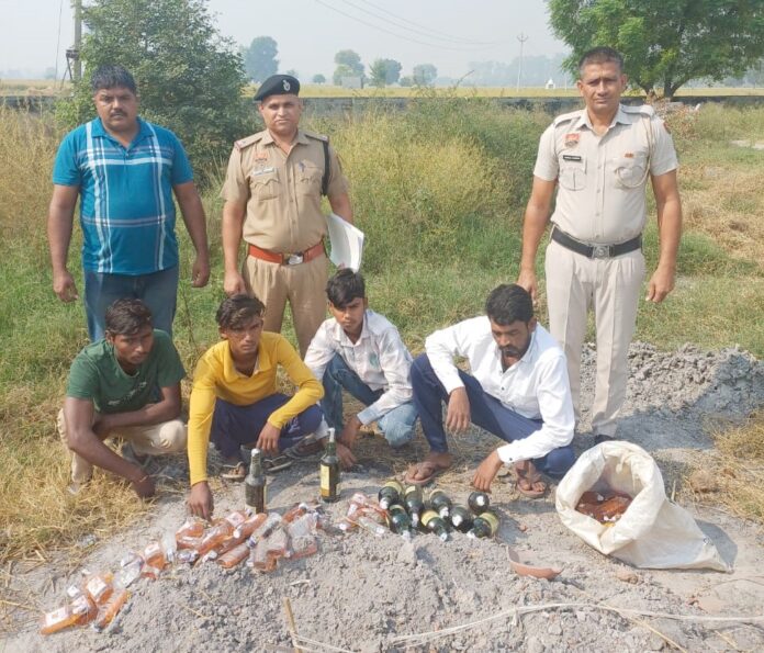 बेरीखेडा शराब ठेका चोरी, पिल्लुखेड़ा पुलिस कार्रवाई, चार आरोपी गिरफ्तार, अवैध शराब बरामद, हरियाणा अपराध समाचार, सफीदों न्यूज़, शराब ठेका चोरी मामला।