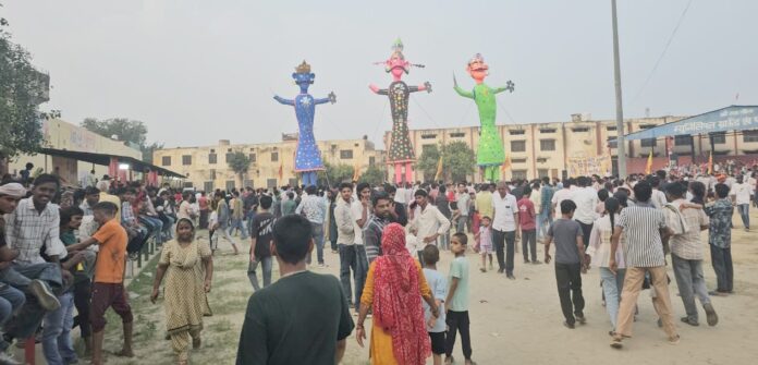 रामलीला मैदान में किया लंकापति रावण, मेघनाद व कुंभकरण के पुतलों का दहन
