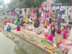 सफीदों, (एस• के• मित्तल) : नगर के ऐतिहासिक नागक्षेत्र सरोवर पर छठ पर्व धूमधाम से मनाया गया। इस उपलक्ष्य में नागक्षेत्र सरोवर के घाटो को दुल्हन की तरह से सजाया गया। इस पर्व को लेकर श्रद्धालुगण सांय को ही नगर के सरोवर पर पहुंच गए थे। श्रद्धालुओं ने यहां पहुंचकर पंडाल बनाकर पूजा-अर्चना की और डूबते सूर्य को अर्घ्य दिया था। उसके उपरांत अपने-अपने पांडाल में रात भर यहीं रहकर भजन-कीर्तन करते छठी मईया के गीत गाए। सुबह होते ही श्रद्धालुओं ने नागक्षेत्र सरोवर में डूबकी लगाई। पूजा-अर्चना के उपरांत उगते सूर्य को अर्घ्य देकर अपना कई दिनों से चल रहा अनुष्ठान संपन्न किया। नागक्षेत्र सरोवर पर प्रसाद वितरित करके अपने घरों को लौट गए।