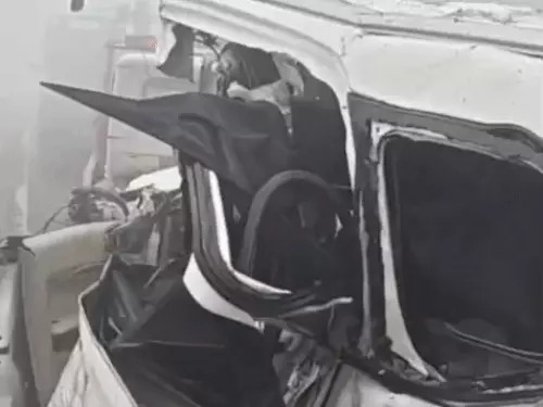 फरीदाबाद क्षेत्र में सुबह के समय कम दृश्यता के कारण बड़ा सड़क हादसा हो गया।
