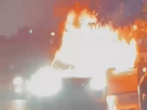 चलती गाड़ी में अचानक आग लगी