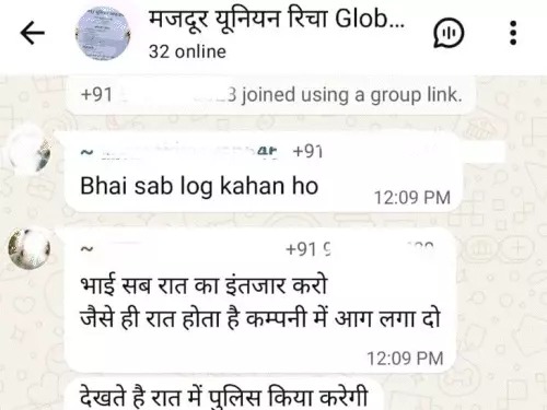 सूत्रों के अनुसार, इन संदेशों में न केवल मैनेजर को निशाना बनाने की बात कही गई, बल्कि दंगा भड़काने के लिए खतरनाक तरीकों का जिक्र भी किया गया। कथित तौर पर कुछ मैसेज में बीयर की बोतलों में पेट्रोल भरकर इस्तेमाल करने जैसी बातें सामने आई हैं, जिससे स्थिति और गंभीर हो गई।