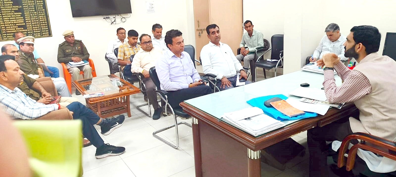 अधिकारियों की बैठक को संबोधित करते हुए एसडीएम पुलकित मल्होत्रा।