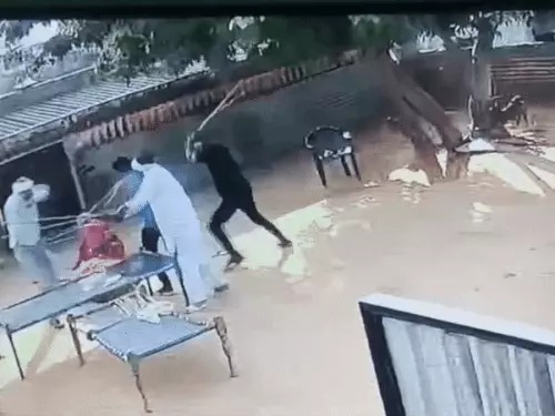 जमीन के लालच में बेटे और पोते ने बुजुर्ग मां को बेरहमी से पीटा