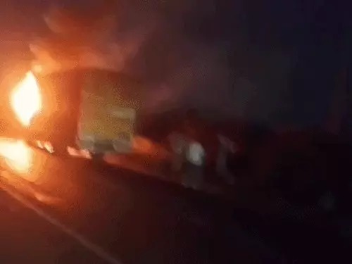 हाईवे पर दौड़ते ट्रक में अचानक भड़की आग, तकनीकी खराबी की आशंका