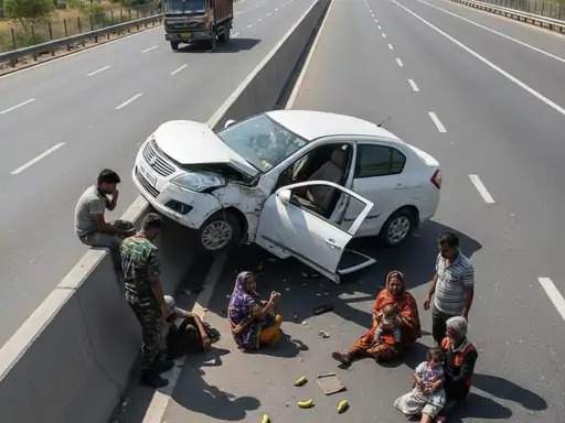 प्राप्त जानकारी के अनुसार कार सवार सभी लोग एक पारिवारिक कार्यक्रम में शामिल होकर लौट रहे थे। जैसे ही उनकी गाड़ी नेशनल हाईवे पर पहुंची, अचानक कार का संतुलन बिगड़ गया। बताया जा रहा है कि तेज गति के कारण चालक वाहन पर नियंत्रण नहीं रख पाया और कार सीधे डिवाइडर से जा टकराई। टक्कर इतनी जोरदार थी कि कार कई पलटे खाती हुई सड़क पर उलट गई।
