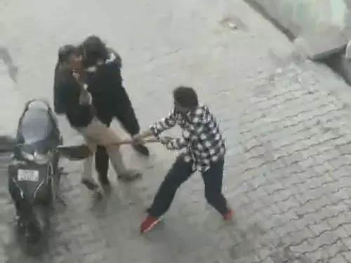 हमले के दौरान पीड़ित को जमीन पर गिरा दिया गया और लात-घूंसों से भी पीटा गया। आसपास मौजूद लोग शुरुआत में घबराकर दूर खड़े रहे, लेकिन मौके पर मौजूद एक महिला ने साहस दिखाते हुए बीच-बचाव किया। प्रत्यक्षदर्शियों के अनुसार, महिला ने हमलावरों पर वस्तु फेंककर और शोर मचाकर उन्हें वहां से भगाया, जिससे घायल की जान बच सकी।