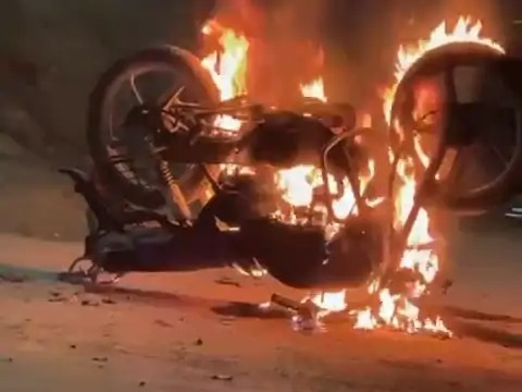 घर के भीतर शुरू हुआ विवाद सड़क तक पहुंचा, मोटरसाइकिल तोड़कर लगाई आग