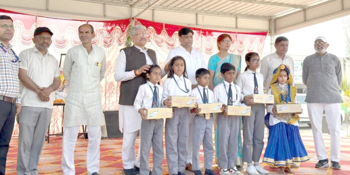पिता की 20वीं पुण्यतिथि पर बच्चों को बांटी शिक्षण सामग्री