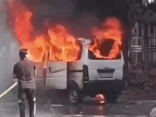 चलती गाड़ी में उठीं तेज लपटें, दूर तक दिखाई दिया धुएं का गुबार